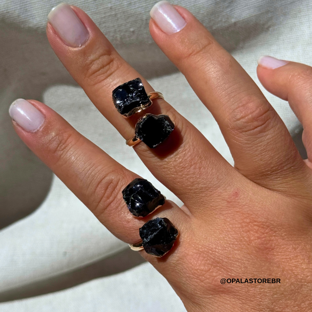 Proteja-se e fortaleça sua energia com o Anel Regulável de Obsidiana Negra, uma joia banhada em ouro que une elegância, proteção energética e poder pessoal. A Obsidiana Negra é conhecida como o cristal da proteção intensa, ajudando a afastar energias negativas, dissolver bloqueios e trazer clareza emocional e mental.