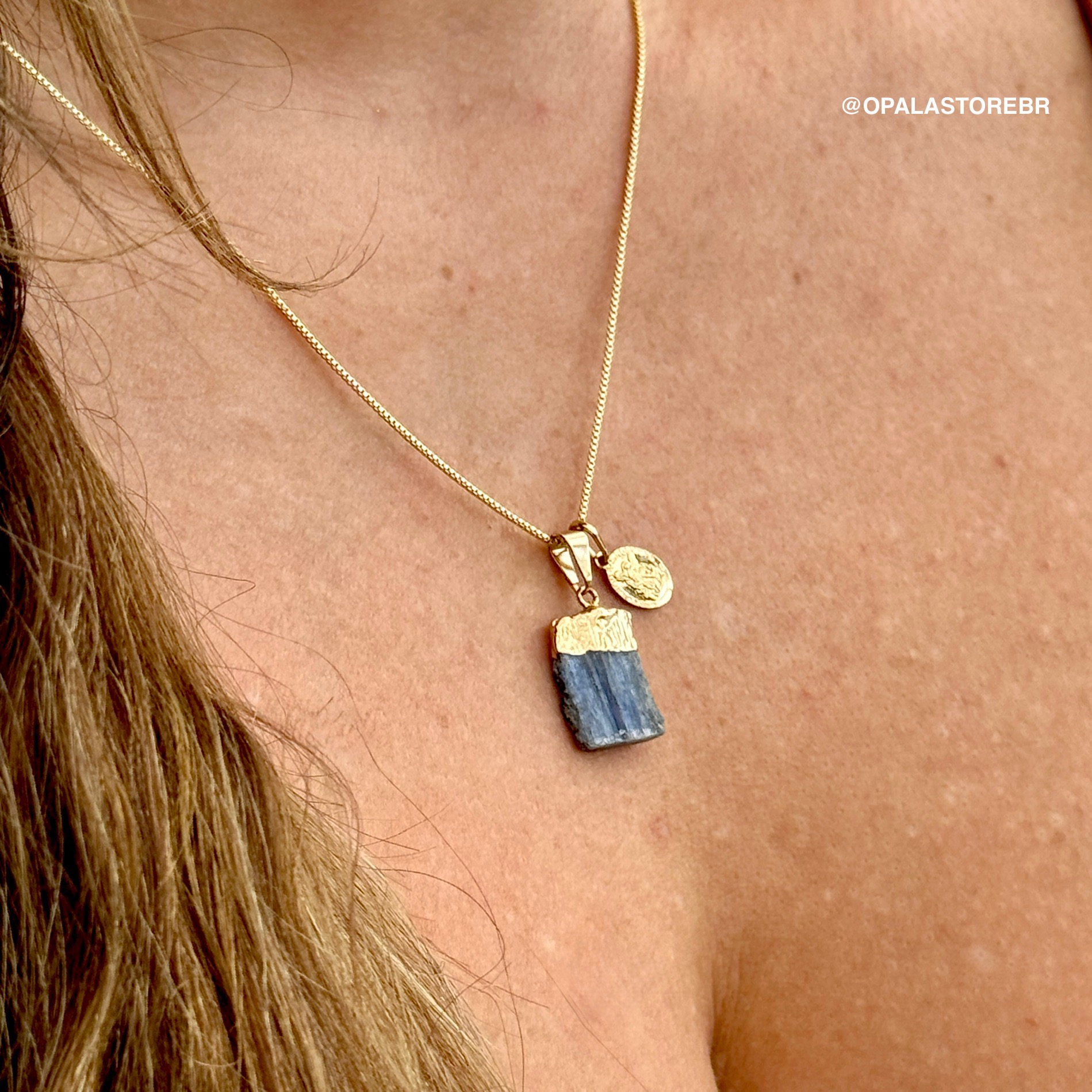 ✔ 1 Pingente de Cianita Azul Natural Banhado em Ouro (aprox. 2 cm)