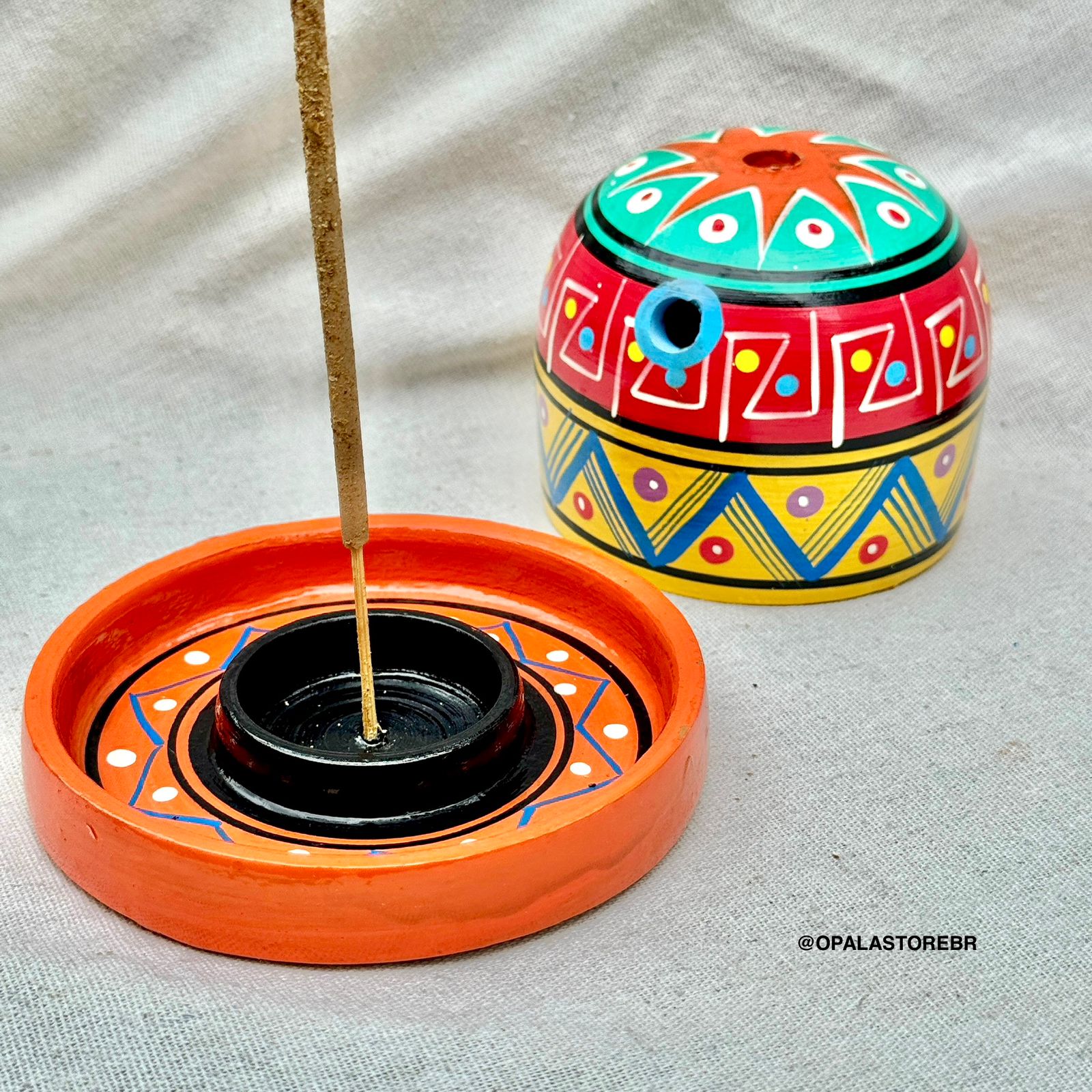 Incensário Iglu em Cerâmica Pintada à Mão – Estilo Andino | Base Laranja