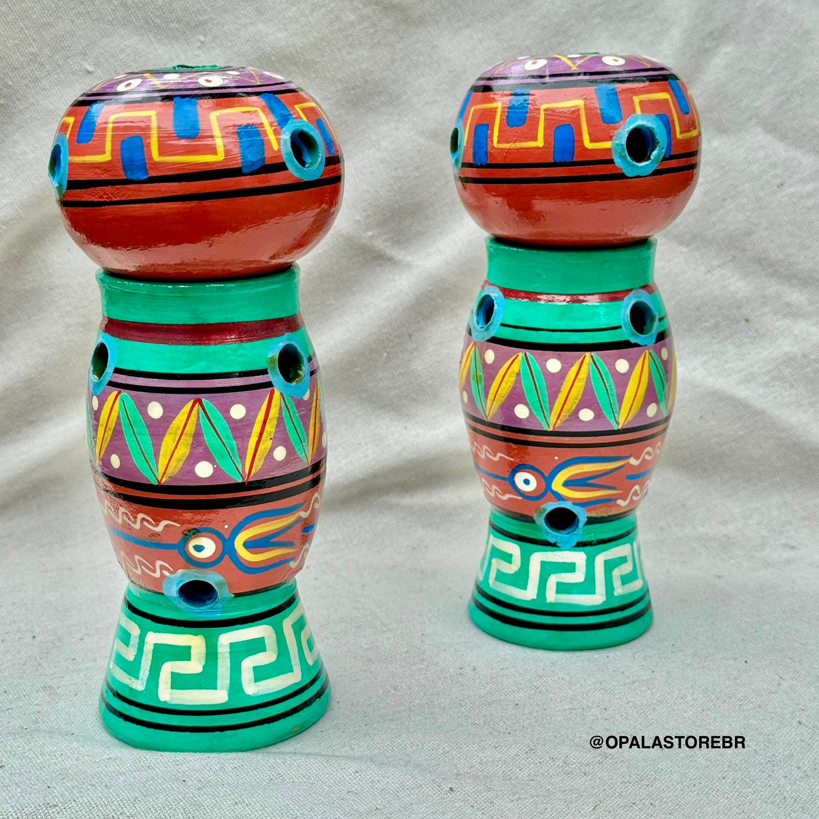 Incensário Torre em Cerâmica Pintada à Mão – Estilo Andino | VERDE ÁGUA