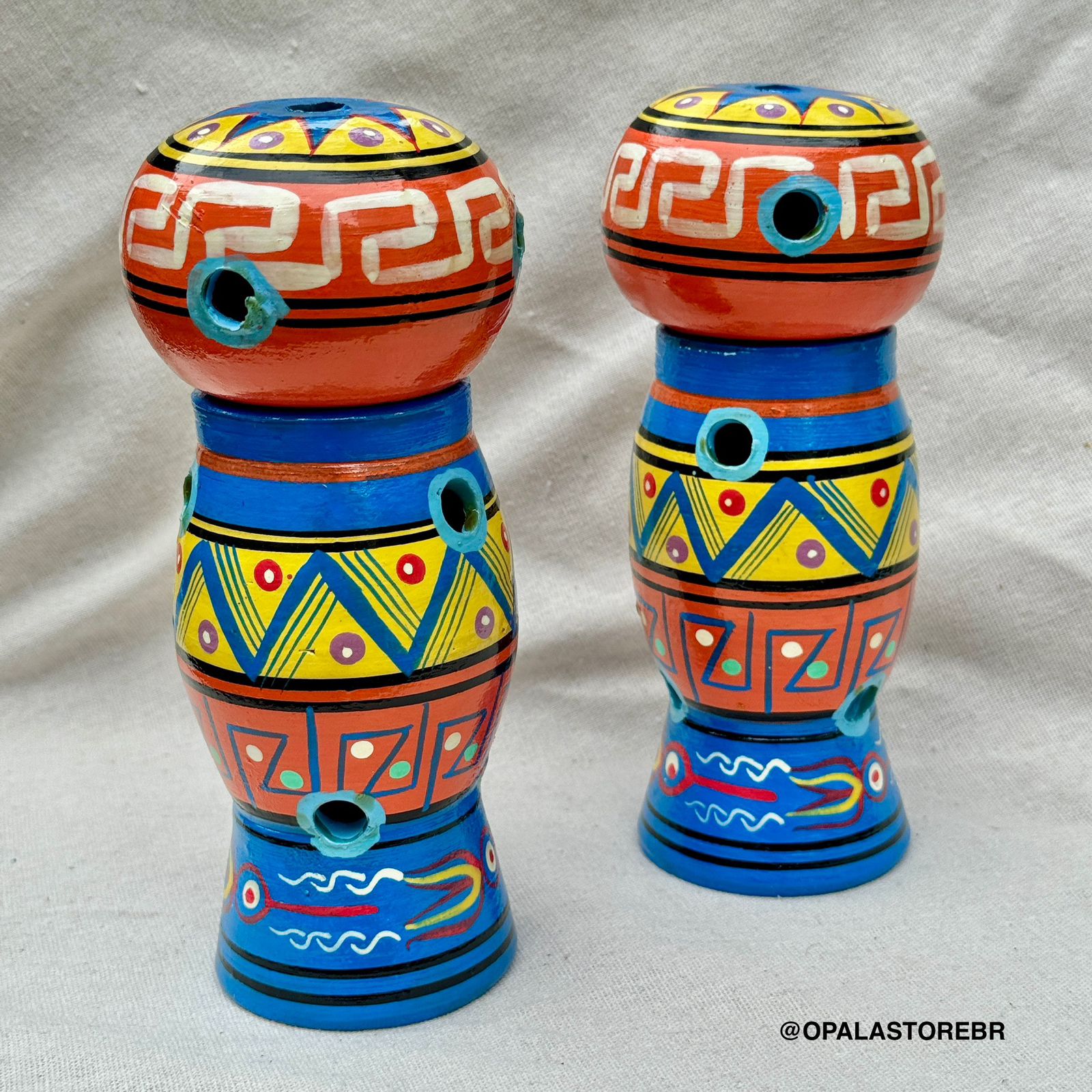 Incensário Torre em Cerâmica Pintada à Mão – Estilo Andino | AZUL ROYAL