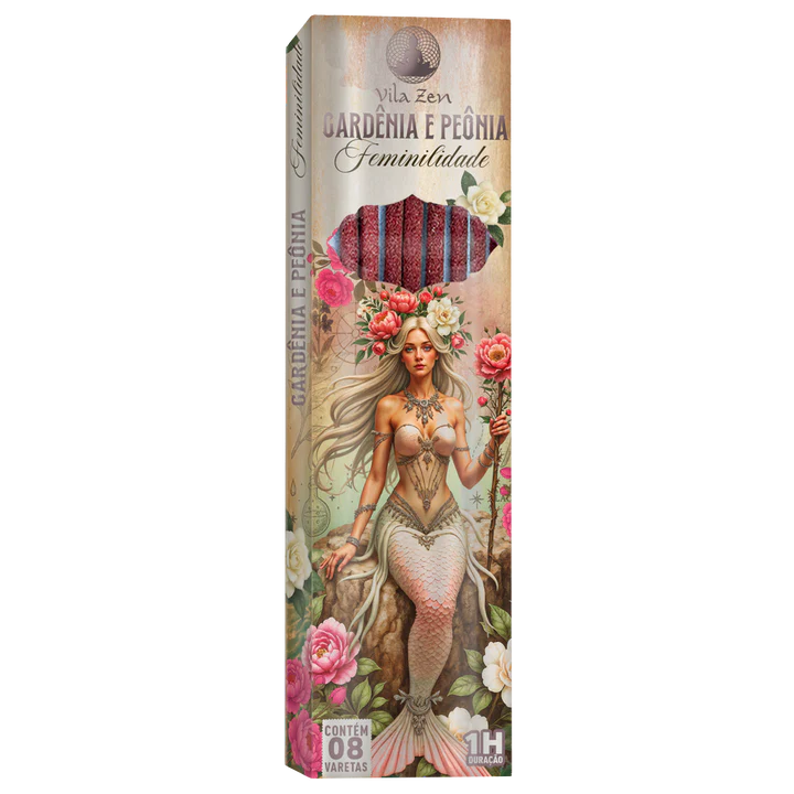 Delicado e encantador, o Incenso Gardênia e Peônia celebra a intuição, a delicadeza e a força interior. Sua fragrância floral é um espelho do mistério e da magia das sereias, despertando autocuidado, amor-próprio e a energia sagrada do feminino. Ao se espalhar pelo ambiente, envolve em graça e poder, lembrando que a feminilidade é uma força profunda que equilibra e renova.