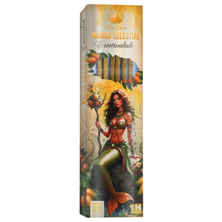 O Incenso Manga Celestial desperta a imaginação e abre espaço para novas ideias. Sua fragrância doce e iluminada conecta com os mistérios guardados pelas sereias, trazendo inspiração para criar, sonhar e se reinventar. Cada sopro aromático é como um raio dourado que guia a mente por horizontes inexplorados, alimentando a criatividade que transforma.