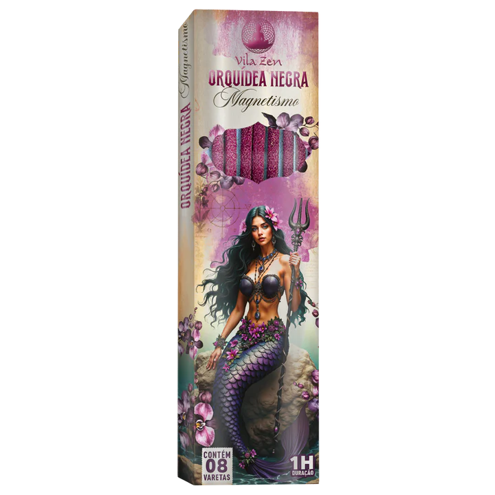 Intenso e misterioso, o incenso Orquídea Negra emana magnetismo e sedução. Seu perfume exótico envolve com sofisticação, atraindo olhares e despertando autoconfiança. É reflexo da aura hipnótica das sereias que encanta e fascina sem esforço, transformando cada momento em uma experiência de poder e presença magnética.