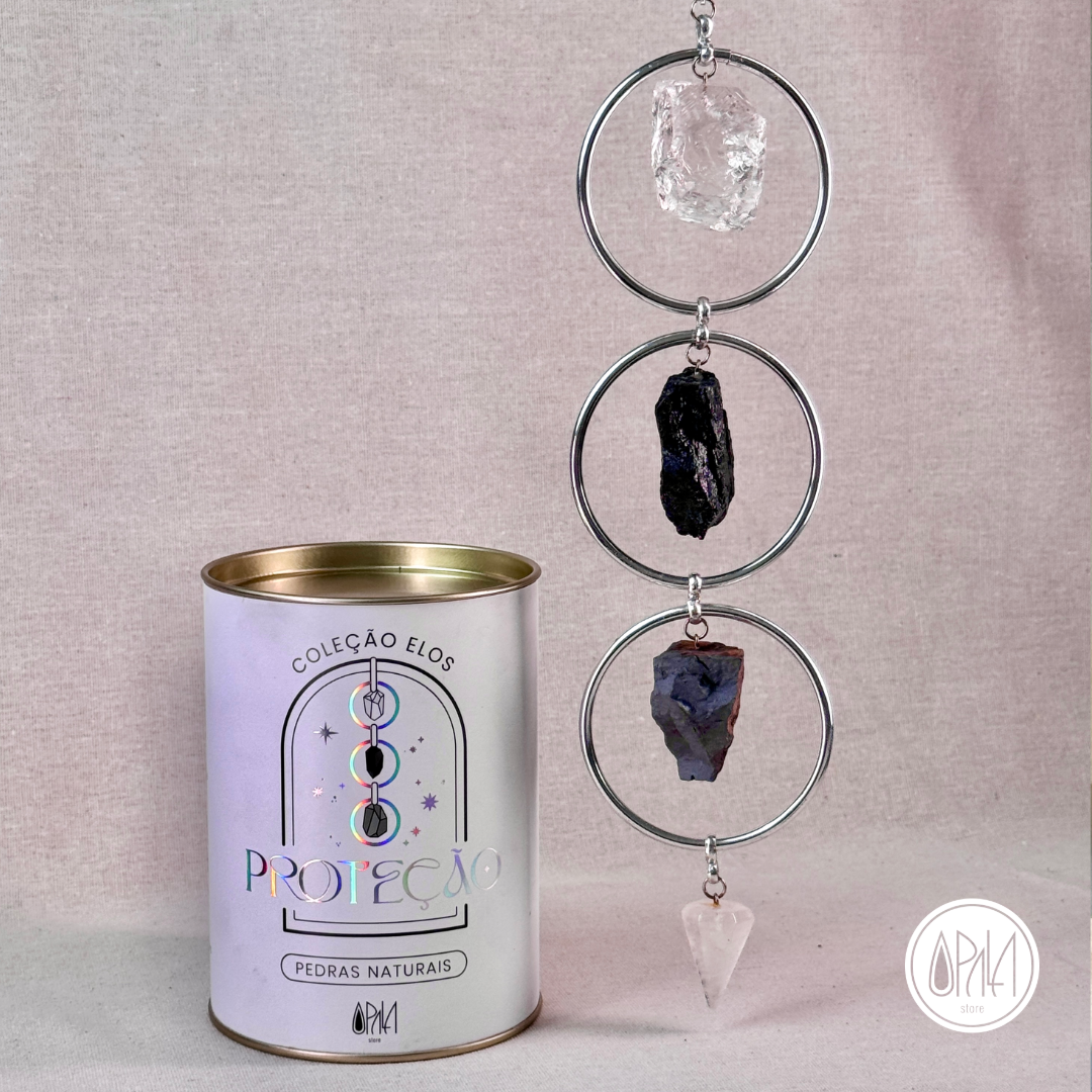 Transforme seu ambiente em um verdadeiro refúgio de proteção com o Móbile de Proteção Energética Prateado. Essa peça une beleza e poder espiritual com três cristais naturais altamente protetores, ideal para equilibrar e fortalecer o campo vibracional da sua casa com elegância e propósito.
