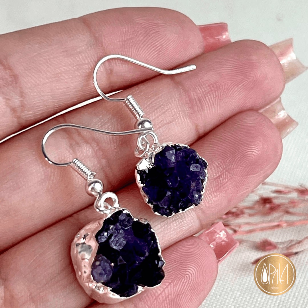 Brinco Drusa de Ametista - Banhado em Prata